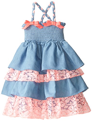 Chambray smocked dress with neon detailed lace