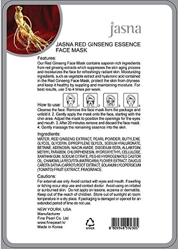 -. Binding : Misc. -. Brand : FINE PEARL -. EAN : 0753807462419 -. Feature : Pack of 10 pieces. Enriched with natural Pearl Powder and Red Ginseng Essence / Pleasurable form of skincare that moisturizes & nourishes in just 20 minutes! / Provides an instant lifting effect that leaves you looking visibly younger in just a few treatments / Reduces fine lines & wrinkles, brightens skin, texture firming affect made from the finest Pearl Powder essence / Protects the skin from dryness and keeps it healthy by supplying and maintaining moisture -. IsAdultProduct : 0 -. Label : Fine Pearl -. Manufacturer : Fine Pearl -. MPN : 844179 -. PartNumber : 844179 -. ProductGroup : Beauty -. ProductTypeName : BEAUTY -. Publisher : Fine Pearl -. Studio : Fine Pearl -. Title : Moisturizing Energizing Skin Rejuvenating Red Ginseng Essence Face Mask Pack of 10 -. UPC : 753807462419