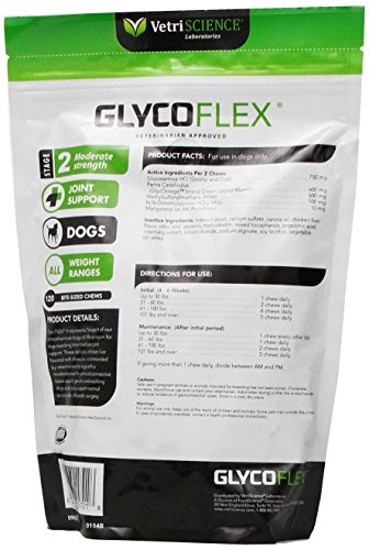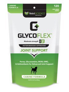 Glyco Flex 2 Hip and Joint Supplement for Dogs represents the second stage in our comprehensive line of joint care products. Recommended by veterinarians, Glyco Flex 2 is the right choice for dogs that are slowing down or showing signs of fatigue or weakness in their hind quarters. Glyco Flex 2 includes perna canaliculus and glucosamine for joint structure as well as MSM for discomfort. For active dogs or lap dogs Glyco Flex 2 helps alleviate joint discomfort associated with day to day activities.Feature