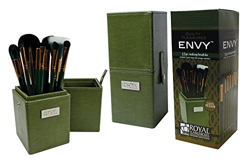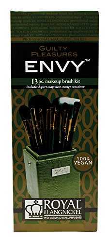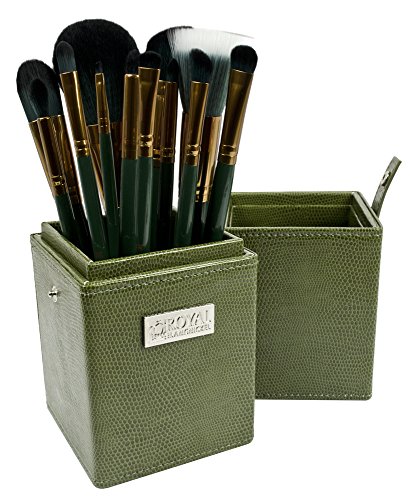12 Standard Size Brushes and 1 Snap-Closed box. Includes following brushes: Powder, Stippler, Foundation, Contour, Concealer, Angle Shader, Crease, Smudger, Line and Smudge, Flat Smudger, Angle Brow.