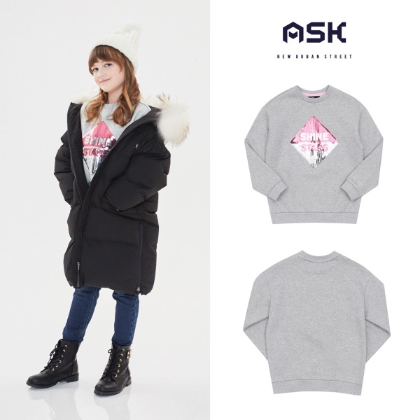 가슴에 스팽글을 포인트로 한 여아 블링블링한 겨울기모맨투맨티셔츠