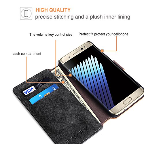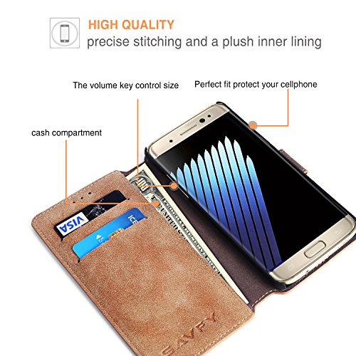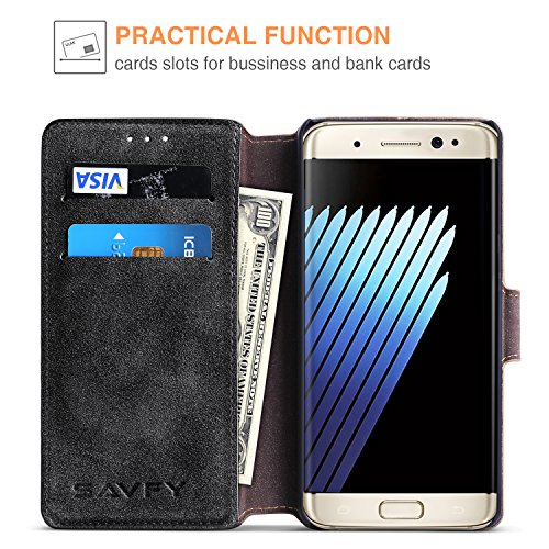 -. Binding : Wireless Phone Accessory -. Brand : SAVFY -. Feature : Stable kickstand----let you watch videos or play games anytime anywhere / The best standing angle to watch a movie or have a video chat / Made of soft faux leather material, protect the phone against scratches or topple / Designed with Retro style and protection, protects your flagship both front and back. / Two inside pockets for credit cards, and one central pocket for notes. This case has a secure, firm closure system -. Label : SAVFY -. Manufacturer : SAVFY -. PackageQuantity : 1 -. ProductGroup : Wireless -. ProductTypeName : WIRELESS_ACCESSORY -. Publisher : SAVFY -. Studio : SAVFY -. Title : Galaxy Note 7 Case, Samsung Galaxy Note 7 Case, SAVFY Premium PU Leather Wallet Case for Samsung Galaxy Note 7