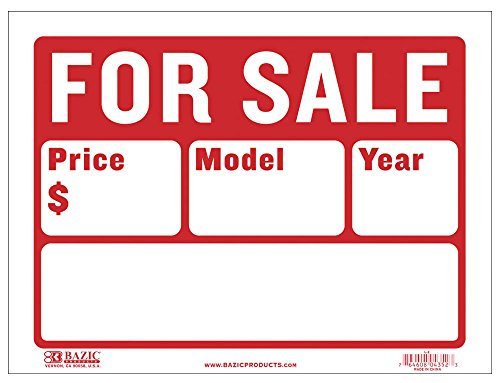 - BAZIC 9” X 12” FOR SALE SIGN (2-LINE) (S-2). Perfect for those looking to sell their car or other vehicles. This For Sale Sign is made with bendable plastic that’s easy to fit onto car windows.
