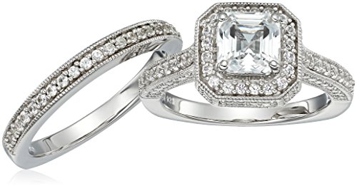 -. Title : Sterling Silver 2 Stone Lab Created White Sapphire and Matching Band Ring