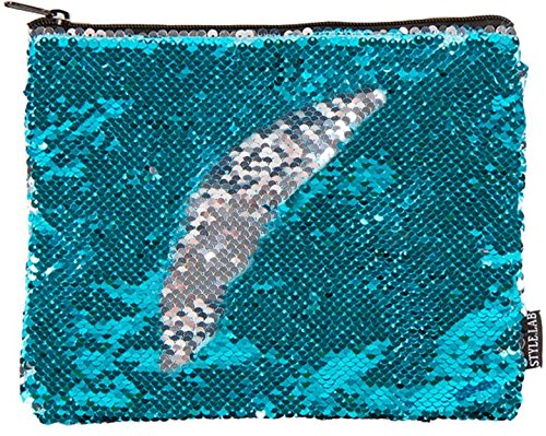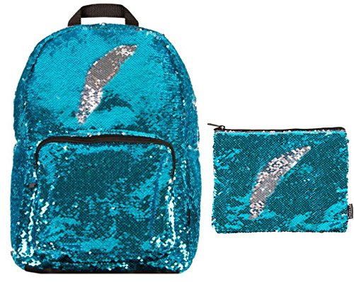 (Style.Lab)/Accessories/Luggage, Bags Travel/DIRECT FROM USA/Magic Sequin! Reversible Sequin Turquoise to Silver Fashion Backpack Matching Zip Pouch