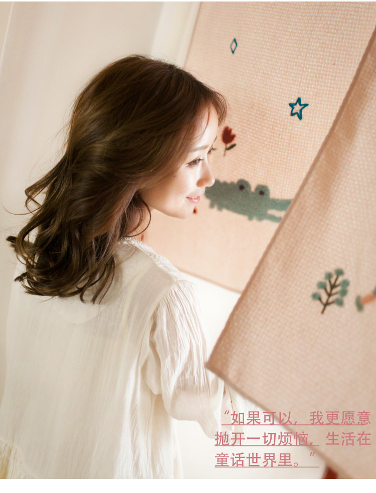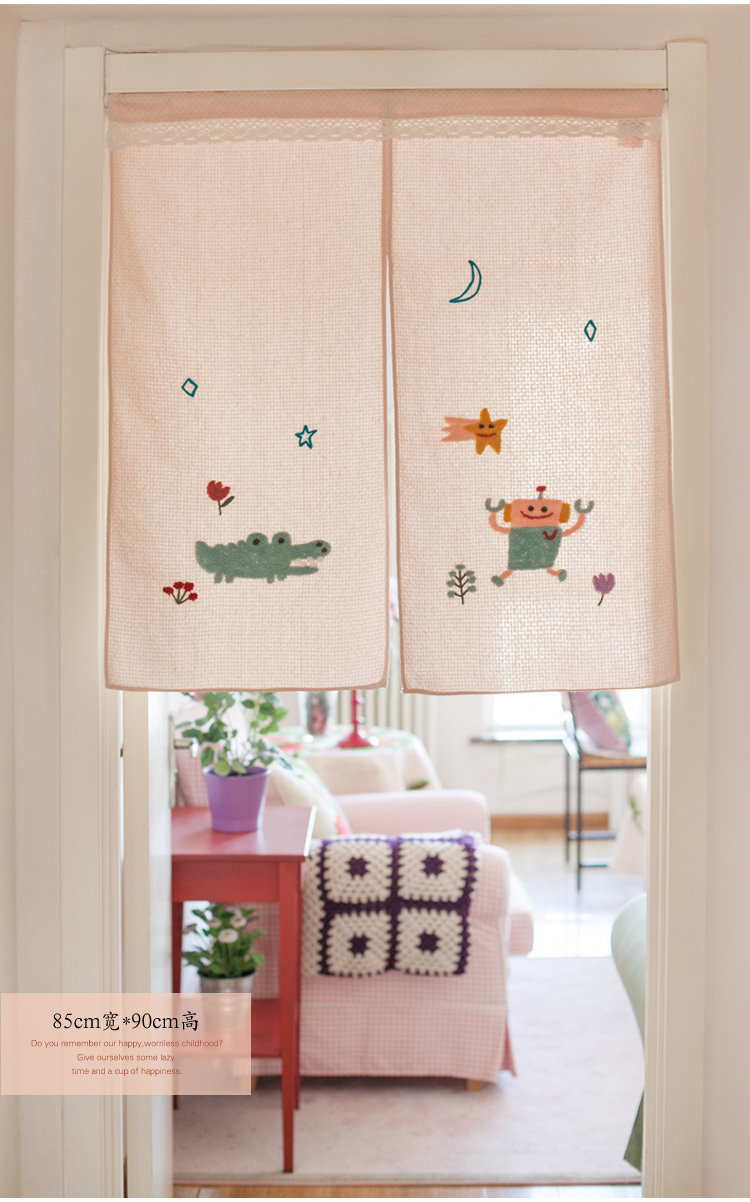 卡通棉麻布艺门帘 香芋谷色鲁绣厨房隔断布帘子 儿童房卧室半帘
