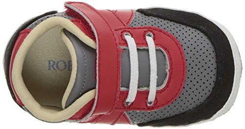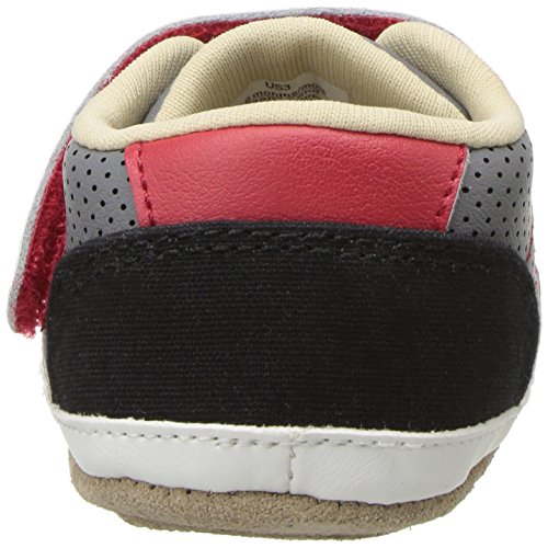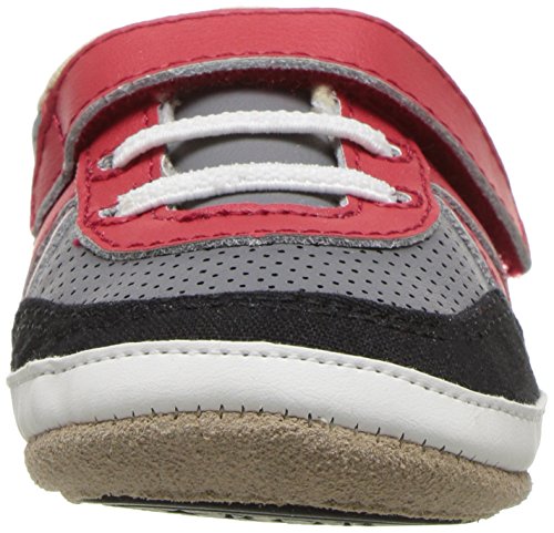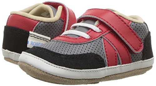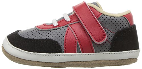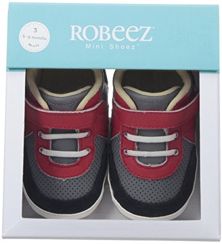 Our boys athletic mini shoe in grey, black and red leather combo with a faux lace closure. Robeez has been providing the premiere choice of infant footwear since 1994, maintaining the quintessential combination of fit and functionality with whimsy and innovative designs.Feature