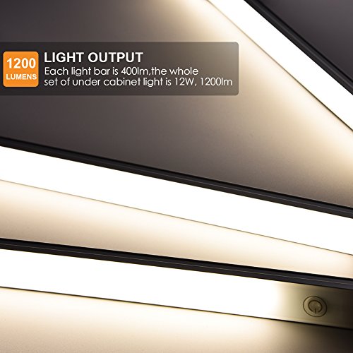 Energy Saving & Super BrightEach LED light bar is 400lm, The whole set of under cabinet light hardwired kit is 12W, 1200lm, save 85% of energy.