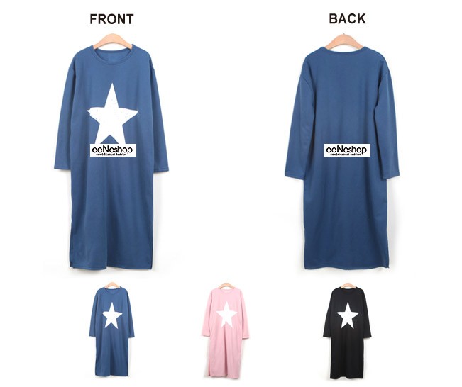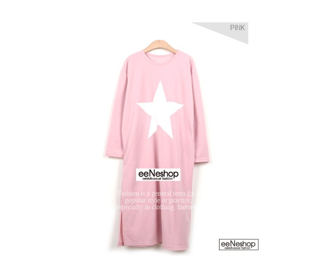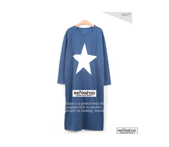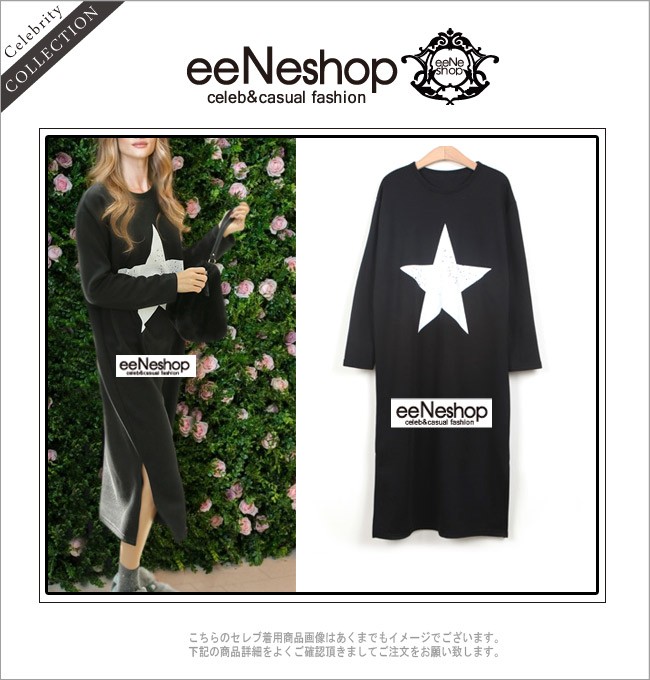 裏起毛 星柄ビンテージプリント スリットワンピース☆