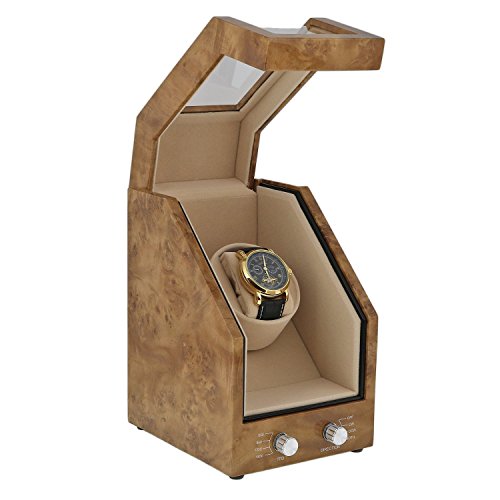 -. Feature : aevitas Uhrenbeweger für 1Uhr. Licht Wurzelholz Finish. Entweder Netzteil oder Akku Sie können also lassen Sie es auf Display, da es ist ein schönes Stück von Möbeln oder Hide IT Away an einem sicheren Ort. / Superior japanischen Motoren mit starken Getriebe führen diese Angelschnur und Sie sind nahezu geräuschlos. Es wird den Wind dreht sich nahezu jede Automatik Uhr, die Pro Tag Einstellungen sind 650, 950, 1250, oder 1850in entweder im Uhrzeigersinn, gegen den Uhrzeigersinn oder beide Richtungen. Dies ist perfekt für 99% der Uhr Marken. / Bitte beachten Sie diese Watch Winders wird nie über Wind Ihre Uhr, Sie Wind für kurze Zeit und Rest alle durch die 24Stunden Zeit erlauben die Uhr läuft zum Ausruhen und natürlich wie gut. / Für alle Größe Uhren bis 65mm Breite und kleine oder größere Größe Handgelenk Watch Armbänder bis zu 20,3cm extra Polsterung können leicht hinzugefügt werden, wenn Sie haben, um ein größeres Handgelenk als das. / 2Jahre GARANTIE Größe H 22,5x B 14,3x T 48cm
