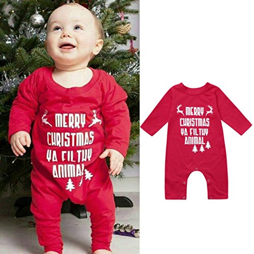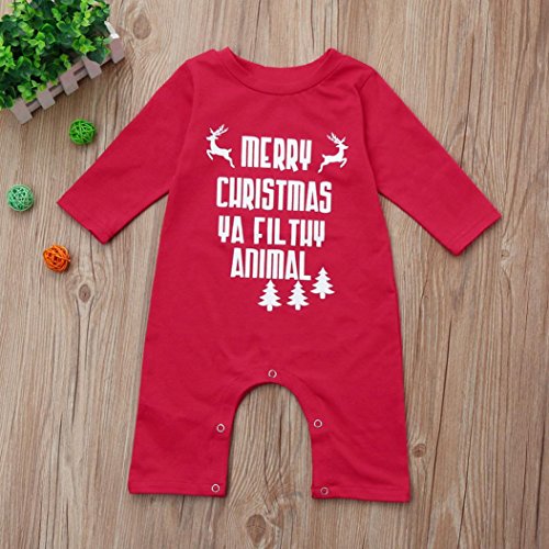 (Sunbona)/Baby Stationery/Stationery Sets/DIRECT FROM USA/Sunbona Christmas Toddler Baby Letter Romper Jumpuit Warm Pajamas Outfits Clothes (0~6months, Red 1)