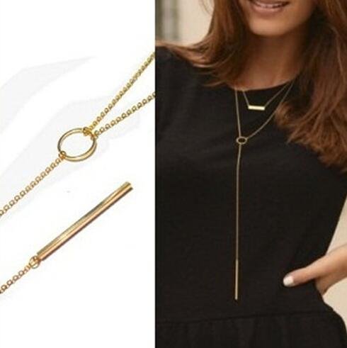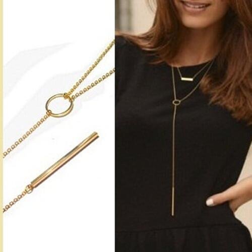 - Simple long necklace with double-deck for women, girls and teens.