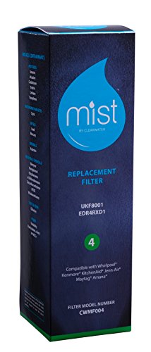 After replacing your filter always allow approximately 4 gallons of water to run through it before drinking. The water may sputter until the air is purged from the new filter. This Mist filter is a direct replacement for Maytag (EveryDrop): UKF8001, UKF8001AXX, UKF8001-750, UKF8001P, UKF8001AXXP, 67002269, 67002671, 67003523, 67003526, 67003527, 67003528, 67003591, 67003727, 67006474, 67006637, 12589201, 12589203, 12589206, 12589208, 12589210; Whirlpool (EveryDrop): OWF51, WF50-NI500, WF50-WI500, 67003523, WF50-KWI500, WF50-NI300, WF50-KNI300, OWF50-WI500, OWF50-NI300, GI6FDRXXY07; Kitchenaid: 4396395, 8171032, 8171249, KBFS25ETSS01. Amana: WF50, OWF50, WF51, OWF51, WF50-NI300, OWF50-NI300, WF50-KNI300, WF50-NI500, OWF50-WI500, WF50-WI500, WF50-KWI500, ASD2326HES, AFI2538AES; Sears/Kenmore: 46-9005, 4690005, 9005, 9005P, 46-9006, 469006, 9006, 9006P, 46-9992, 469992, 9992, 9992P, 469005750, 469005-750, 46-9005-750, 469006750, 469006-750, 46-9006-750, 04609005000, 04609006000; Puriclean II: 670032526, 67003527, 67003528Feature