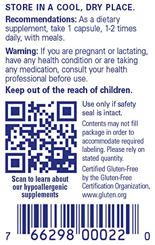 FREE FROM: Pure Encapsulations products are free from wheat, gluten, egg, peanuts, magnesium stearate, hydrogenated fat, artificial sweeteners and colors, and other unnecessary excipients. Any product containing ingredients derived from allergens, such as soy, dairy or shellfish is clearly labeled. * These statements have not been evaluated by the Food and Drug Administration. This product is not intended to diagnose, treat, cure, or prevent any disease.
