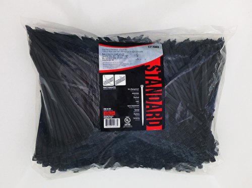 Cambridge Zipits 1000 pcs- 8" 75 Lbs Tensile Strength, Standard Duty Nylon Cable Ties, UV Black