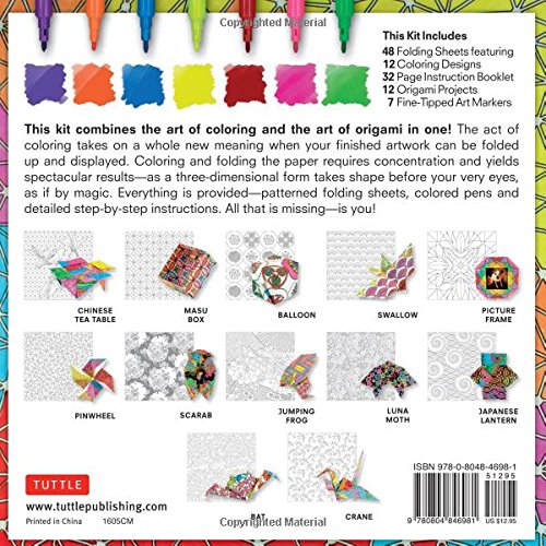 -. Title : Color Your Own Origami Kit: Creative, Colorful, Relaxing Fun: 7 Fine-Tipped Markers, 12 Projects, 48 Origami Papers & Adult Coloring Origami Instruction Book
