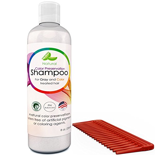 Revitalize and awaken hair color with professional quality color preserving shampoo The masterfully blended synergy of botanical plant extracts and carrier oils works to preserve hair color, volumizes hair, promotes hair growth, moisturizes hair strands, enhances scalp health and more! Get long lasting color that is vibrant and radiant with no chemicals or sulfates. Our shampoo comes with a wood style wide tooth comb made from resin pulp. Great for wet or dry as well as long or short hair and even mustaches and beards.