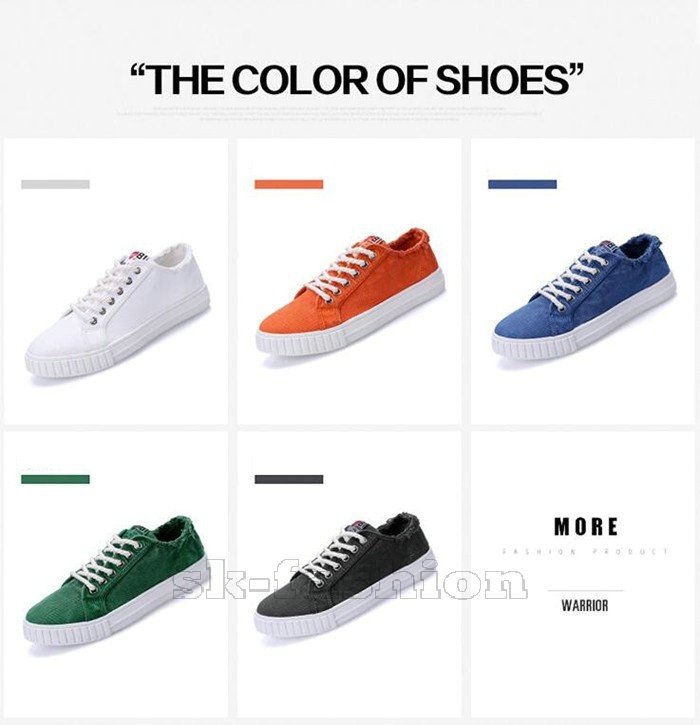 【サイズ】39、40、41、42、43、4439 24.5CM40 25.0CM41 25.5CM42 26.0CM43 26.5CM44 27.0CM【素 材】アッパー:キャンバス ソール:ゴム【カラー】ホワイト グリーン ブルー グレー オレンジ【Item Comment】トレンドカラーを押さえた合わせやすいタイプをご用意。細部にもこだわりを詰め込んだカジュアルシューズです。通学履き、お仕事履き、散歩用、軽スポーツにと、用途はいろいろ。【ご注意】※撮影時に使用した洋服、アクセサリー等の内容は含まれません。※こちらの商品はシューズ単品の販売です。※モニターによって実物と多少色具合が異なって見える場合もございます。※保管する時は、汚れを落として陰干ししてから、通気性の良い所へおしまい下さい。※火のそばに置くと軟化し変形することがあります。※毎日、ローテーションすることでシューズの寿命もアップします。