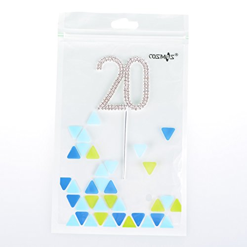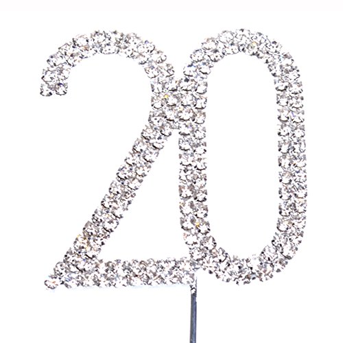 Cosmos Rhinestone Crystal Silver Number 20 Birthday 20th Anniversary Cake Topper