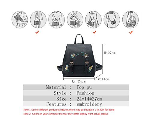 -. Title : Fashion Floral PU Leather Backpack Women Embroidery School Bag For Teenage Girls Brand Ladies Small Backpacks Gray Sac A Dos
