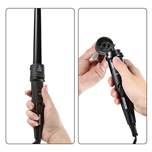 ONE SET FOR ALL CURLING STYLES: comes with 6 piece interchangeable tourmaline ceramic ion barrels, meets your different curling style needs. Barrels are in different shapes and sizes: cylinder 32mm, conical 20-25mm, bubble 19mm, cylinder 19mm, conical 9-18mm, cylinder 25mm. Change your hair style from beachy waves to tight curls yourself, enjoy the endless styling possibilities at home instead of hairdressing salon, save your money and precious time.
