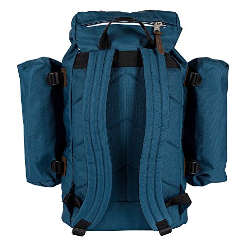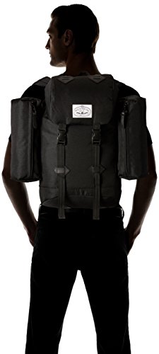 Product Description The rucksack is a classic old school design that looks as good now as it did 30 years ago. It comes with removable side pouches that strap to the sides for toiletries, a water bottle or other accessories. Take the pouches off and use them as internal organizers or dope kits. 0