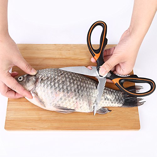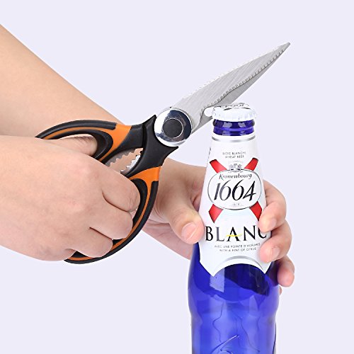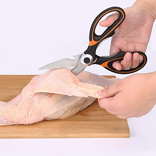 MULTIFUNCTION - Utility scissors for chicken, poultry, fish, meat, vegetables, herbs and small bones. Easily as bottle opener and nut cracker.