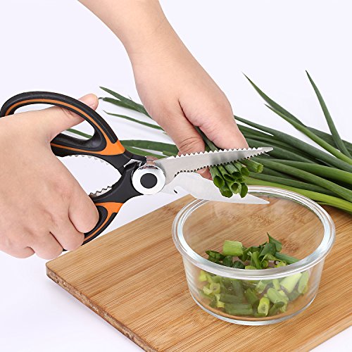 HIGH QUALITY - HOMEIDEAS kitchen shears are made from high quality corrosion resistant stainless steel, ensuring they are going to last longer than others. The blades are ultra sharp and you will use them with minimal effort.