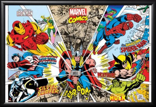 - Title : Framed Marvel Comics - Rays Of Characters 36x24 Dry Mount Poster Matte Back Wood Framed Art Print Iron Man Thor Hulk Spiderman Captain America Wolverine Silver Surfer