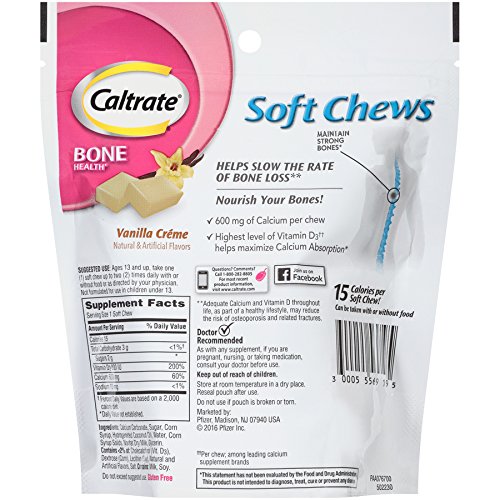 Studio : Caltrate Publisher : Caltrate Binding : Health and Beauty Product Description Enjoy a convenient and delicious way to support healthy bones with Caltrate 600 plus D3 Soft Chews. If you find taking calcium tablets difficult, individually-wrapped soft chews make a great alternative that makes it easy to nourish your bones anytime, anywhere and with or without food. (1)If you do not get enough calcium in your diet, your body begins to take calcium that is reserved in your bones for other daily functions. Calcium and vitamin D supplements are an easy way for you to help get enough calcium daily to support your bone health and keep you moving. Plus, the advanced levels of vit. D3 in each Caltrate soft chew, helps maximize calcium absorption. (1)Backed by over 25 years of nutritional science research, Caltrate is formulated with consideration given to recommendations from the National Academy of Sciences to support bone and overall health. So, it’s no surprise that Caltrate is the #1 selling calcium supplement brand in the United States and trusted by so many people like you. (1,2) Also, try Caltrate 600 D3 Calcium and Vitamin D3 Soft Chews is tasty chocolate truffle flavor.(1) These statements have not been evaluated by the Food and Drug Administration. These products are not intended to diagnose, treat, cure or prevent any disease. (2) IRI retail sales data supports that Caltrate is the #1 selling calcium supplement brand in the US 0