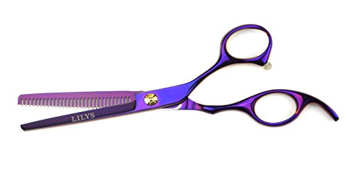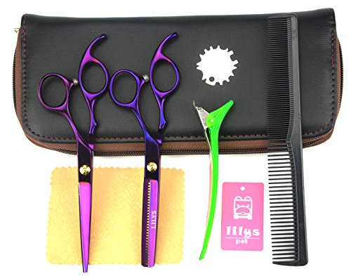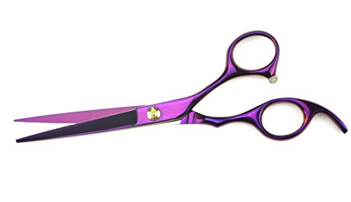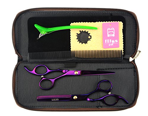 LILYS PET 5.5" Professional Barber Razor Edge sakura Hair Cutting Shears set,Titanium Hairdressing Scissors and Hair Thinning Scissors/Shears Set (Purple)