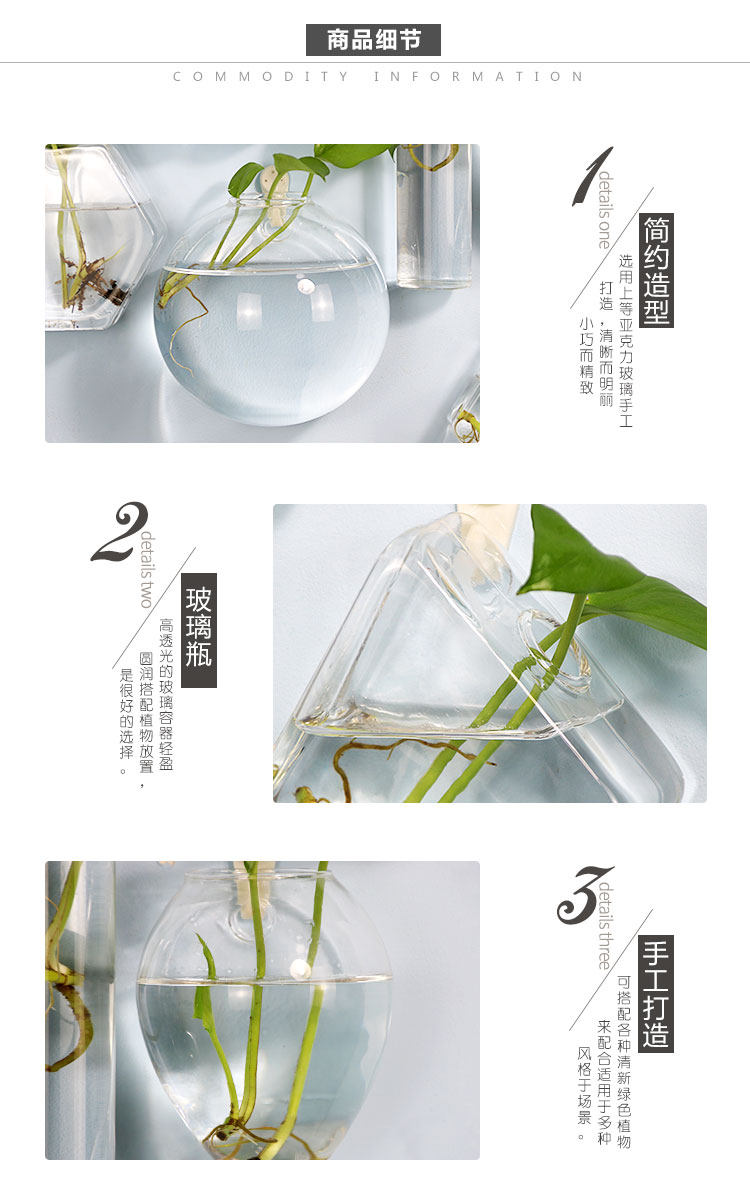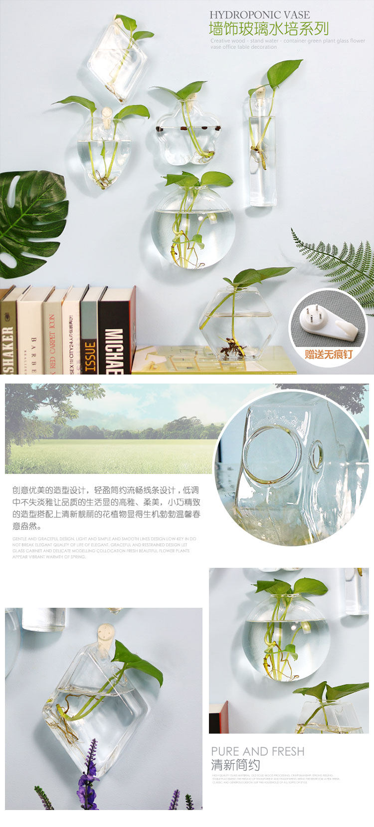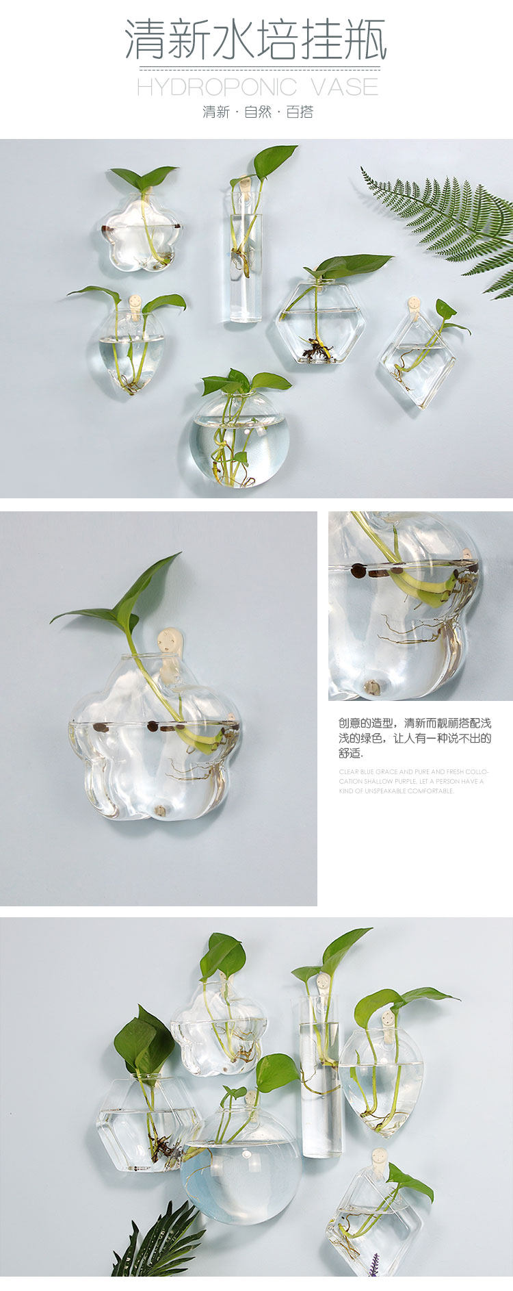 水培花瓶创意透明壁挂 绿萝水植物客厅墙上插花玻璃容器 悬挂装饰