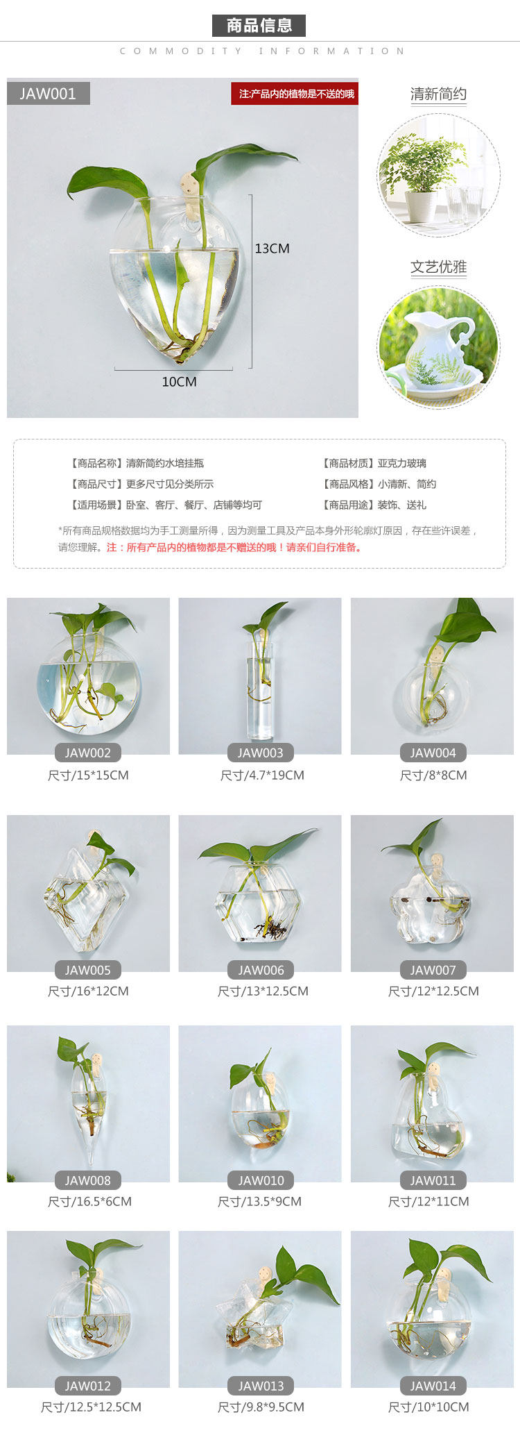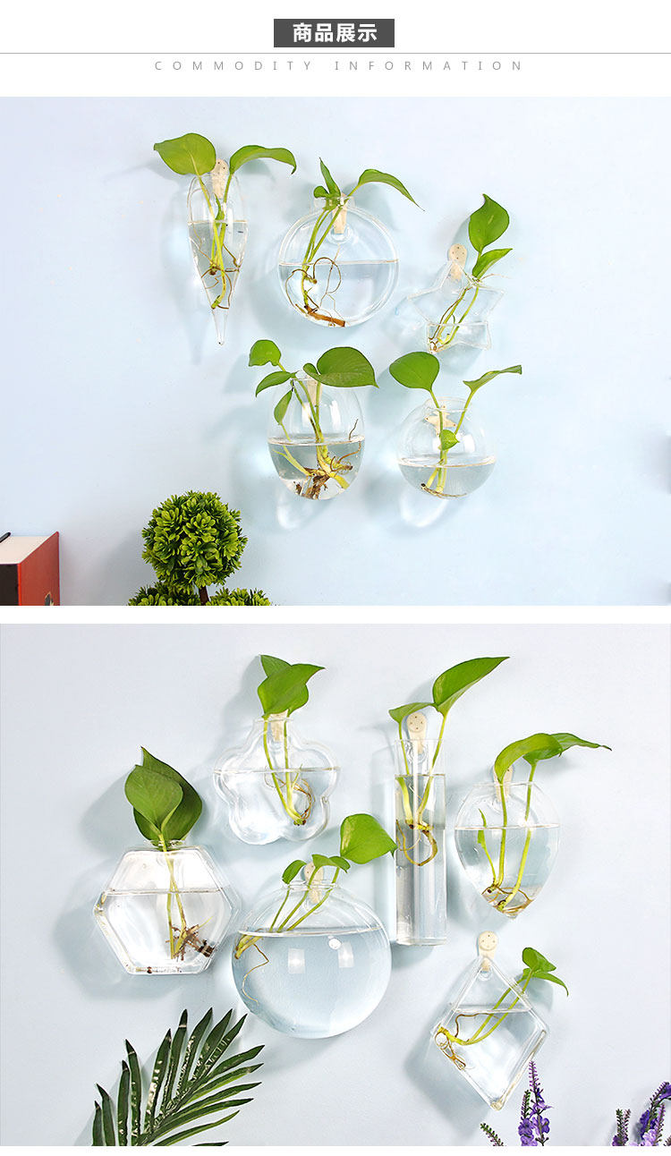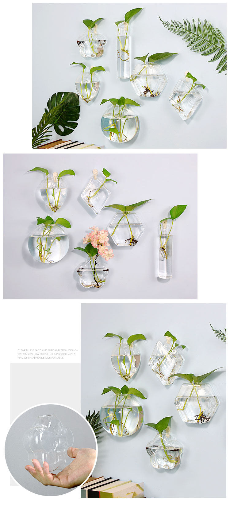 水培花瓶创意透明壁挂 绿萝水植物客厅墙上插花玻璃容器 悬挂装饰