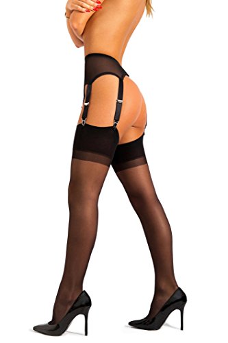 Ladies: Want lingerie that makes you feel SEXY AND CONFIDENT - for that special someone or just for yourself? Unlike strappy garter belts that are made just for skinny supermodels, the sofsy classic Mesh Suspender / Garter Belt was made for beautiful women of ALL SHAPES AND SIZES! It not only looks gorgeous; it's made of strong, elasticized mesh that SLIMS YOUR WAIST, HIPS, & TUMMY. This retro-style garter belt is comfortable, too! While cheap products have waistbands that are thin and tight, ours is wider, with soft material that won't cut into your skin. Plus, it retains its elasticity over time so you always have a great fit.