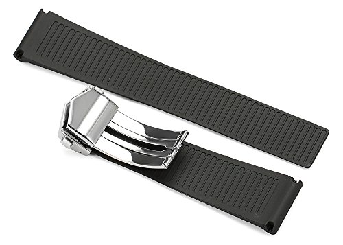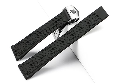 -. Title : iStrap 22mm Black Rubber Strap Tyre Grain TAG HEUER Style Watch Band With Steel Deployment Clasp
