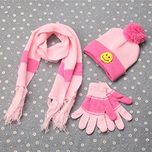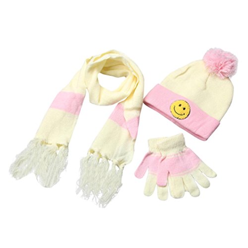 Product DescriptionSpecification: 100% brand new and high quality Quantity:1PC Gender:Unisex Item type:Scarf Hat Gloves Style:Casual Material:Wool Blend Size:Free Size(3-10 years old baby) Pattern type:Smile Package include:1* Scarf Hat Gloves0