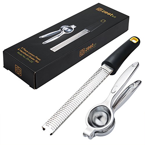 Studio : Zestkit Publisher : Zestkit Product Description Add the right amount of flavor to your dishes using the Zestkit 2pc. Lemon Press Handheld Grater set. The lemon press pushes out the most juice with minimal effort; use it with lemons, limes, and even cherry tomatoes. A handheld grater made with high quality stainless steel lets you garnish your dishes with citrus zest, cheese, chocolate, and more to amplify mouth-watering flavors. Both utensils are ergonomically designed, allowing you to comfortably prepare your food. These kitchen utensils are also FDA approved, BPA free and dishwasher safe, giving you peace of mind and added convenience