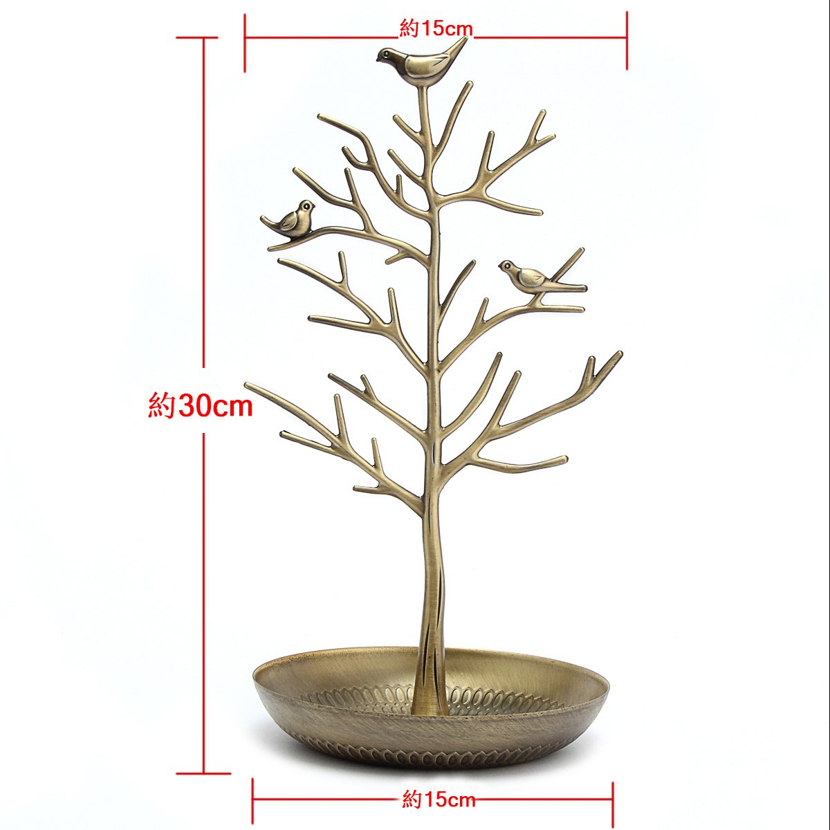 <サイズツリー:高さ30cm×幅16cm、お皿:直径15.5cm×深さ2.5cm 材質:ツリー/アルミ お皿/鉄。 ツリー型のジュエリースタンドと指輪や小物のアクセサリーを収納できる収納ボックスが一緒になったコレクションボックス。 組み立て式なので、取り扱いにも便利。 ご自宅の整理はもちろん、店舗、展示会で大活躍。