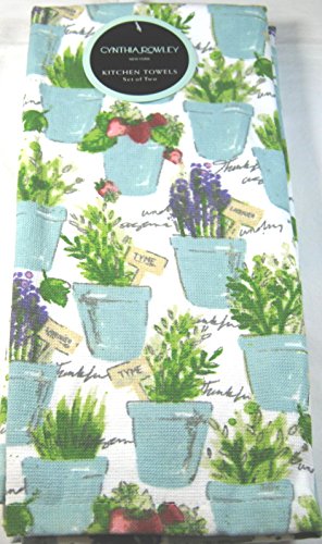 Cynthia Rowley Plush Soft Kitchen Towels 2 Pk.Potted Herbs 18" x 28" 100% Cotton