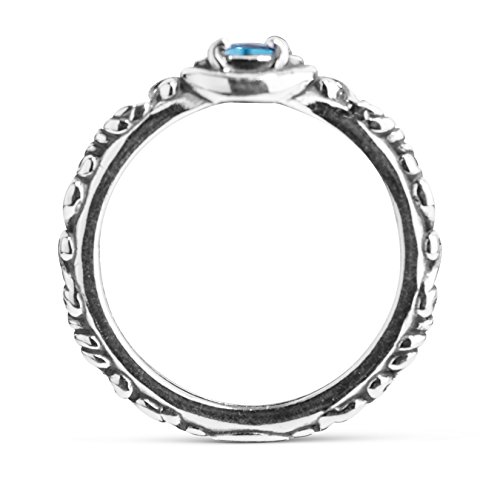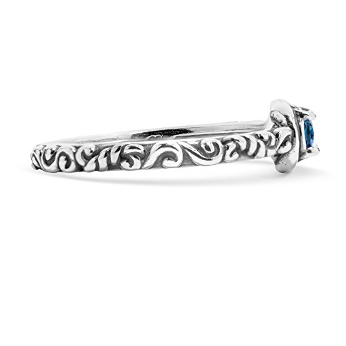 -. Feature : .925 Sterling Silver and Genuine Blue Topaz / Measures approximately 1/8"L x 3/4"W / See Ruler View for accurate sizing. Silver may tarnish over time. / Handcrafted in America with lifetime warranty on all jewelry / Round, prong-set blue topaz; scroll details on shoulders; oxidized finish.