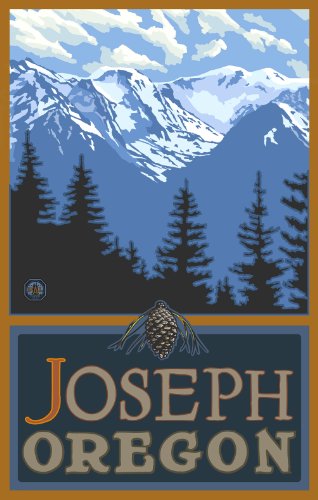 NORTHWEST ART MALL JOSEPH OREGON SNOWY MOUNTAINS PAINTING BY PAUL A LANQUIST, 11-INCH BY 17-INCH