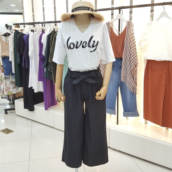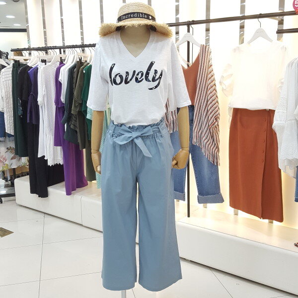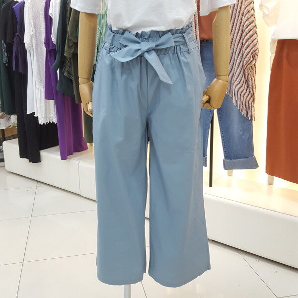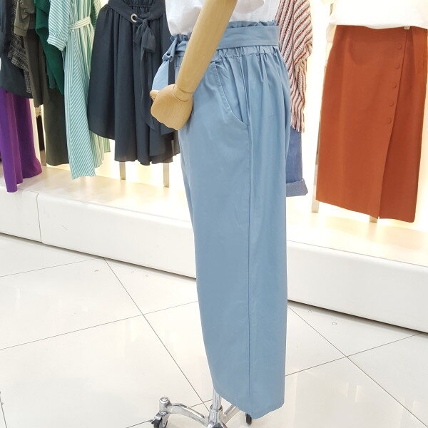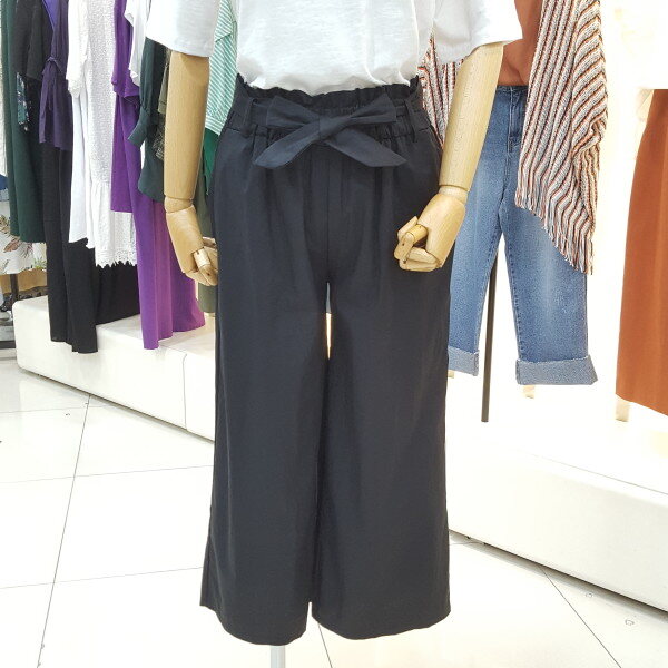 주름밴드 스타일에 리본벨트가 있는 여성스러운 느낌의 와이드 팬츠입니다.기본티셔츠나 블라우스등...여러 아이템과 매치하시기 좋습니다.