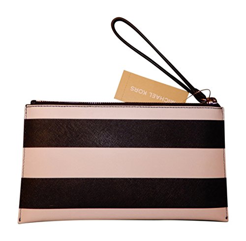 Product Description Michael Kors saffiano leather clutch/wristlet in bold navy and optic white stripe is sure to add a statement to your outfit. Plenty of room for your phone and other essentials. 0