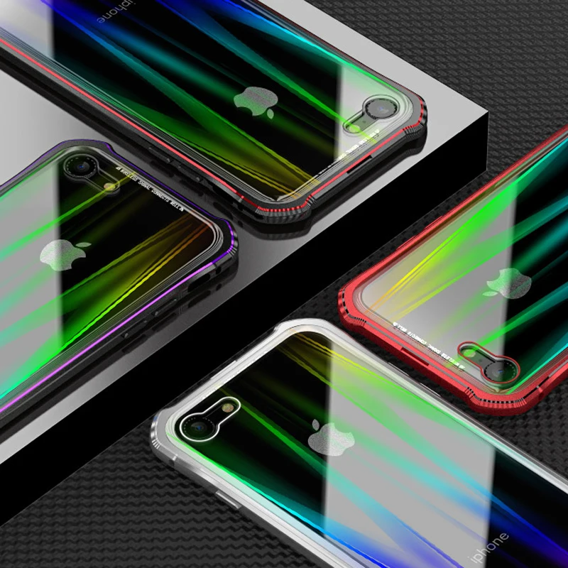 Style:Aluminium Metal Bumper Case with laser Back Glass Cover