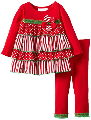 -. Feature : 2-piece set includes: top & leggings / Top: scoopneck, long sleeves / Leggings: elastic waistband / Polka-dot and chevron tiered ruffles on the top / Ruffled ribbon trim, Rosette with rhinestone