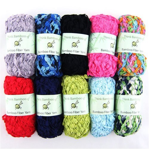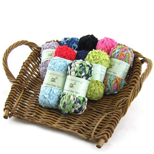 This bulky weight yarn is made from a blend of bamboo fiber and cotton with a touch of nylon for strength and stretch. This yarn has a variable gauge with thick and thin sections, and knits up nice and soft with an interesting texture.