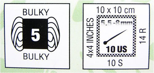 4 X 4 inches/10 X 10 cm on 5.5-8mm/10US needles = 14 rows, 10 stitches