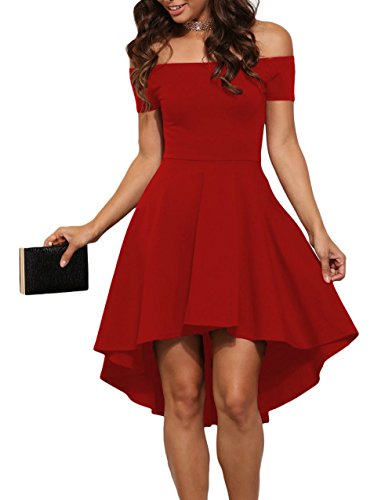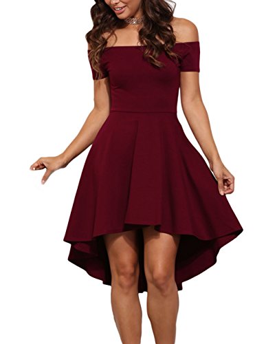 Off the shoulder dresses are all the rage this season! Show off your amazing fashion sense with this dress that features an elastic off the shoulder neckline, a short sleeve, a slim fitting bodice and a super cute skater skirt with a hi low hem. Burgundy All The Rage Skater Dress is gorgeous elegant for you next social activity.Feature