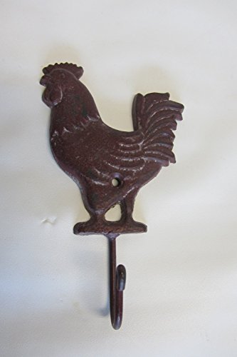 • Iron rooster wall hook by VIP International with dark red wash