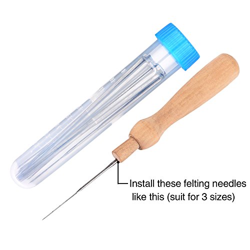 eBoot 60 Pieces 3 Sizes Felting Needles Wool Felt Tools with 3 Pieces Clear Bottles and 3 Pieces Wooden Handles